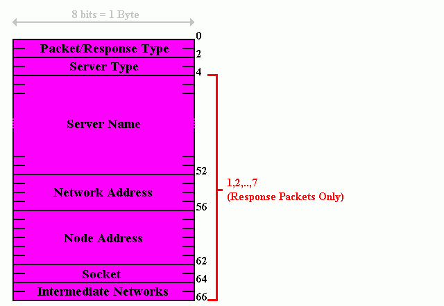 SAP Queries only contain the first protocol fields 'packet type' and 'server type'. Only SAP Response packets use all protocol fields.